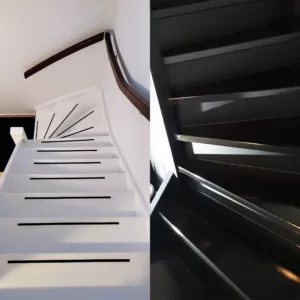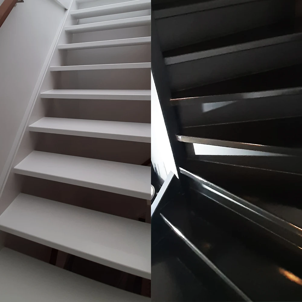 Een trap wordt binnenshuis intensief gebruikt en moet daarom niet alleen een mooie uitstraling hebben, maar ook slijtvast en veilig zijn. Er zijn verschillende afwerkingsmogelijkheden, zoals het aanbrengen van antislipverf voor extra grip. Desgewenst verzorgen wij ook het schilderwerk in het aangrenzende trapgat.